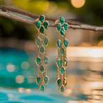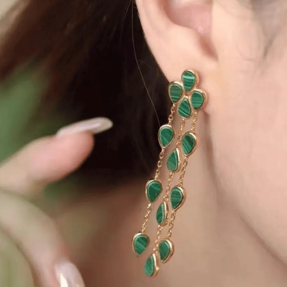 Malachite Teardrop Tassel 18K Gold Earrings - Bold Vintage Green Stone Dangles